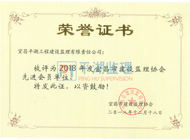 | 2018年度宜昌市先進(jìn)監(jiān)理企業(yè) |