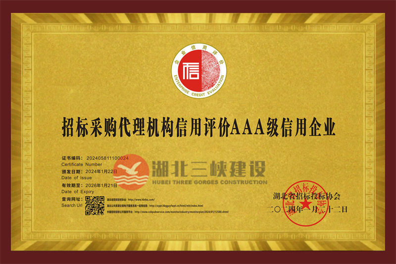 招標采購代理機構(gòu)信用評價AAA級信用企業(yè)