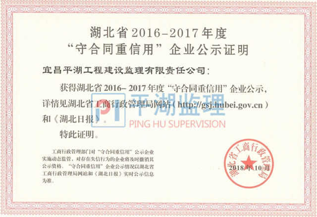 | 湖北省第十四屆(2016-2017年度)守合同重信用企業(yè) |