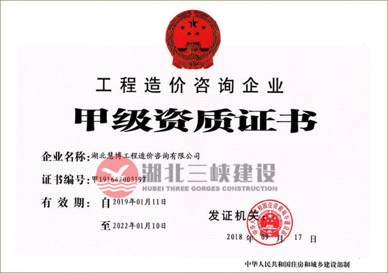 工程造價咨詢企業(yè)甲級資質(zhì)證書