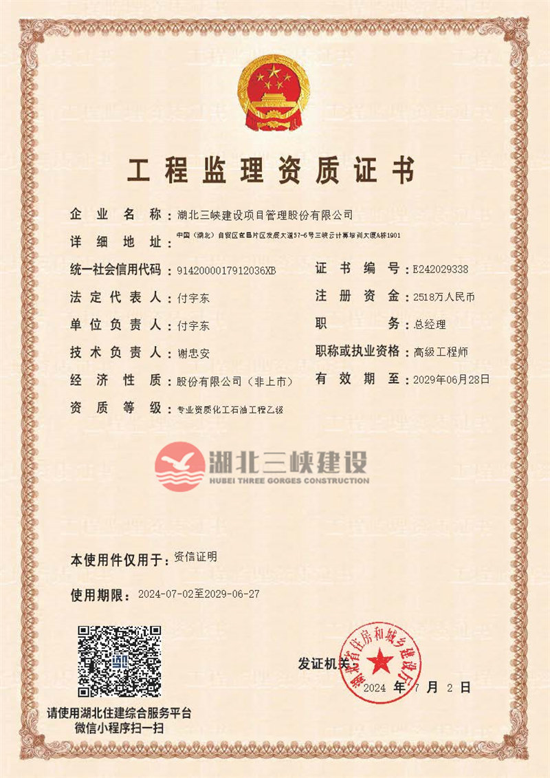 湖北三峽建設項目管理股份有限公司營業(yè)執(zhí)照