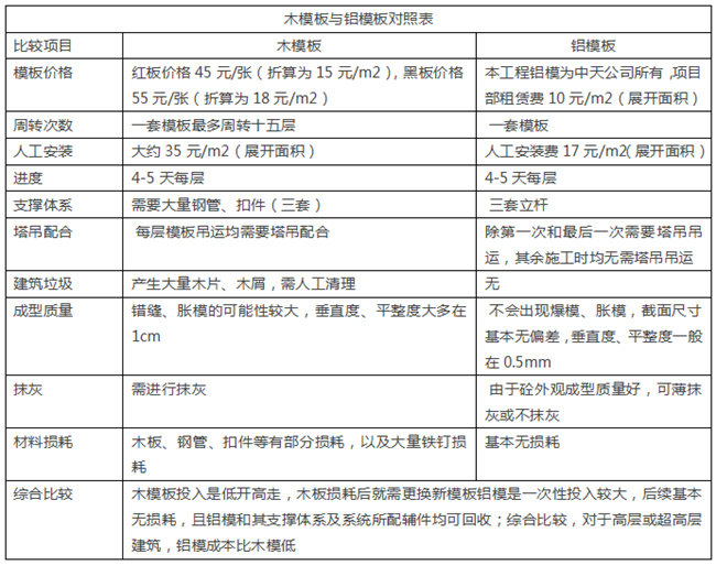 二、鋁模工藝優(yōu)點 1、鋁合金模板穩(wěn)定性好、承載力高、剛度大,拆模后混凝土表面平整光潔。鋁模體系整體采用鋁合金板組裝而成,系統(tǒng)拼裝完成后,形成一個整體框架,承載力高達每平方米50KN,抗坍塌性和抗傾覆性提高。 2、鋁模板配合CL結(jié)構(gòu)保溫一體化、內(nèi)墻選用ALC板,可以達到施工過程免抹灰,二次結(jié)構(gòu)完成即可開展鋁合金、樓地面工程;樓地面完成即可精裝修作業(yè),利于流水施工節(jié)約工期,并從工藝上消除了空鼓,有效減少開裂。 3、對鋁模進行深化設(shè)計時,諸多短墻、門垛等二次構(gòu)件同步設(shè)計,與主體混凝土一次性澆筑,不僅加快了施工進度,而且減少了二次結(jié)構(gòu)用工,提高了施工質(zhì)量。 4、鋁模定位準確,結(jié)構(gòu)洞口誤差小,主體與砌體完成即具備鋁合金安裝條件;同時門窗采用凈口安裝,從工藝上避免了因塞縫不密實導(dǎo)致門窗存在滲漏水的隱患。 5、鋁合金模板施工方便、效率高。鋁合金建筑模板系統(tǒng)組裝簡單、方便,每塊重量約10Kg,完全由人工拼裝,不需要任何機械設(shè)備的協(xié)助,施工時通常只需要一把扳手或小鐵錘,方便快捷,熟練工人每人每天可組裝20-30平米。 6、鋁模在樓層上的轉(zhuǎn)運基本上靠人工提升,大大提高了塔吊的周轉(zhuǎn)率,從而加快施工進度。 三、鋁模施工澆筑砼前,監(jiān)理工作重點 1、所有模板應(yīng)清潔且涂有合格脫模劑。 2、確保墻模按放樣線安裝。 3、檢查全部開口處尺寸是否正確并無扭曲變形。 4、檢查全部水平模(頂模和梁底模)是水平的。 5、保證板底和梁底支撐桿是垂直的,并且支撐桿沒 有垂直方向上的松動。 6、檢查墻模和柱模的背楞和斜支撐是否正確。 7、檢查對拉螺絲、銷子、楔子保持原位且牢固。 8、把剩余材料及其它物件清理出澆筑區(qū)。 9、確保懸掛工作平臺支撐架可靠固定在混凝土結(jié)構(gòu)上。 四、木模板與鋁模板各項指標對比表 木模板與鋁模板對照表