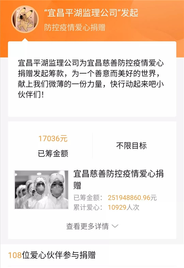 突發(fā)的新型冠狀病毒感染肺炎疫情牽動(dòng)著黨中央和全國(guó)人民的心,全國(guó)各地已啟動(dòng)突發(fā)公共衛(wèi)生事件Ⅰ級(jí)響應(yīng),各部門、各行業(yè)積極行動(dòng),投身到抗擊疫情的第一線。團(tuán)結(jié)一心、眾志成城,堅(jiān)定不移打贏這場(chǎng)無(wú)硝煙的抗疫之戰(zhàn),已全面進(jìn)入決戰(zhàn)時(shí)段。 春風(fēng)楊柳萬(wàn)千條,六億神州盡舜堯”,抗擊疫情平湖有責(zé)。我們雖不是白衣天使,不能做到義無(wú)反顧奔赴前線抗擊疫情,但我們能夠情系前線,獻(xiàn)出我們的一份愛(ài)。公司黨支部號(hào)召全體員工弘揚(yáng)守望相助精神,積極行動(dòng)捐款援助,用善舉彰顯平湖監(jiān)理人的責(zé)任擔(dān)當(dāng),同呼吸、共命運(yùn)、心連心,為決勝疫情做出積極的貢獻(xiàn)! 由于疫情嚴(yán)重,公司取消節(jié)后面簽報(bào)到,用愛(ài)國(guó)捐款的方式,在堅(jiān)定支持抗擊疫情中報(bào)到。以信念備戰(zhàn),用愛(ài)心參與,為勝利助力! 2月8日我公司黨支部發(fā)起的愛(ài)心捐款,短短3個(gè)小時(shí),108位同事踴躍參與,奉獻(xiàn)善款17036元。加上公司總經(jīng)理1月26日捐款10000元、1月28日捐款10000元,我公司參與抗疫共計(jì)捐助37036元。愛(ài)心還將持續(xù)。
