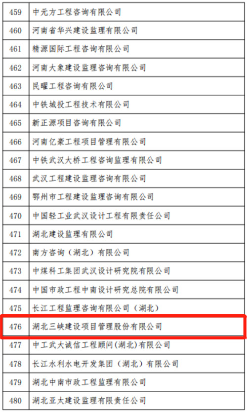 2024年9月30日,在中國(guó)建設(shè)監(jiān)理協(xié)會(huì)公布的2022-2023年度單位會(huì)員信用評(píng)價(jià)結(jié)果中,湖北三峽建設(shè)項(xiàng)目管理股份有限公司被評(píng)為AAA級(jí)中國(guó)工程監(jiān)理信用企業(yè)。