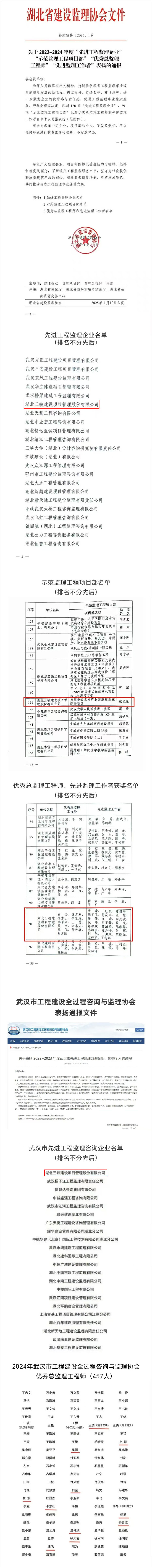 近日,在湖北省建設(shè)監(jiān)理協(xié)會(huì)發(fā)布的2023-2024年度省級(jí)“先進(jìn)工程監(jiān)理企業(yè)”、“示范監(jiān)理工程項(xiàng)目部”、“優(yōu)秀總監(jiān)理工程師”、“先進(jìn)監(jiān)理工作者”和武漢市工程建設(shè)全過(guò)程咨詢與監(jiān)理協(xié)會(huì)發(fā)布的2022-2023年度武漢市“先進(jìn)工程監(jiān)理咨詢企業(yè)”、“優(yōu)秀個(gè)人”的評(píng)選結(jié)果公告中,湖北三峽建設(shè)項(xiàng)目管理股份有限公司再獲殊榮。 此次評(píng)選結(jié)果,湖北三峽建設(shè)項(xiàng)目管理股份有限公司榮獲2023-2024年度省級(jí)“先進(jìn)工程監(jiān)理企業(yè)”、2022-2023年度武漢市“先進(jìn)工程監(jiān)理咨詢企業(yè)”榮譽(yù)稱號(hào);點(diǎn)軍橋邊農(nóng)卉產(chǎn)業(yè)園基礎(chǔ)設(shè)施配套項(xiàng)目監(jiān)理部榮獲“省級(jí)示范監(jiān)理工程項(xiàng)目部”榮譽(yù)稱號(hào);謝忠安、秦晉江、白全、李東山、李世紅、王勇、吳剛、熊飛、徐天喜、趙志剛榮獲“省級(jí)優(yōu)秀總監(jiān)理工程師”榮譽(yù)稱號(hào);白全、杜波、熊飛、徐天喜、夏忠斌、秦晉江、張瑜、李東山、文瑞、王勇、吳剛榮獲“武漢市優(yōu)秀總監(jiān)理工程師”榮譽(yù)稱號(hào);鮑宇飛、陳恭銘、陳俊平、陳澤峰、董亮、都啟斌、范曉光、黃清橋、荊凱、李興波、倪瑋、孫嶺洲、汪慧、王旺民、王勇政、王志鵬、文瑞、肖王鋒、張輝、張偉、張瑜、左開(kāi)亮榮獲“先進(jìn)監(jiān)理工作者”榮譽(yù)稱號(hào)。