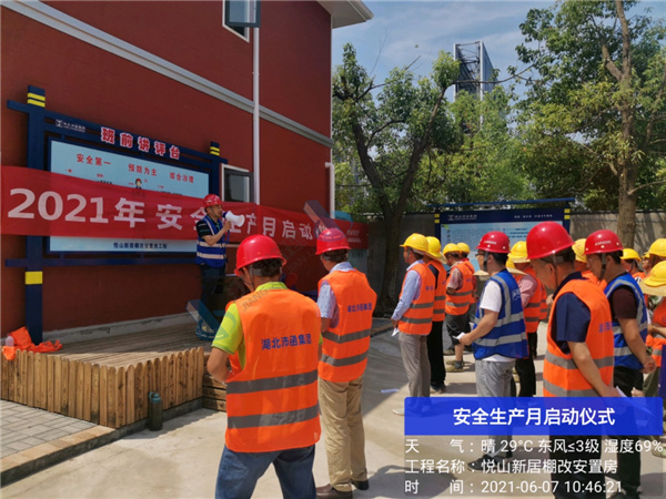今年6月是第20個全國“安全生產(chǎn)月”,2021年6月7日上午,我公司監(jiān)理的悅山新居棚改項目部舉行“安全生產(chǎn)月”啟動儀式。宜昌高新城發(fā)、湖北沛函集團、宜昌平湖監(jiān)理以及勞務班組等60余人參加了本次活動。