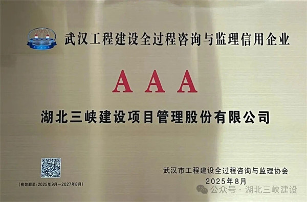 熱烈祝賀我公司榮獲武漢市工程建設(shè)全過程咨詢與監(jiān)理協(xié)會2024~2025年度武漢市監(jiān)理與咨詢企業(yè)信用等級評價結(jié)果 AAA級信用企業(yè)