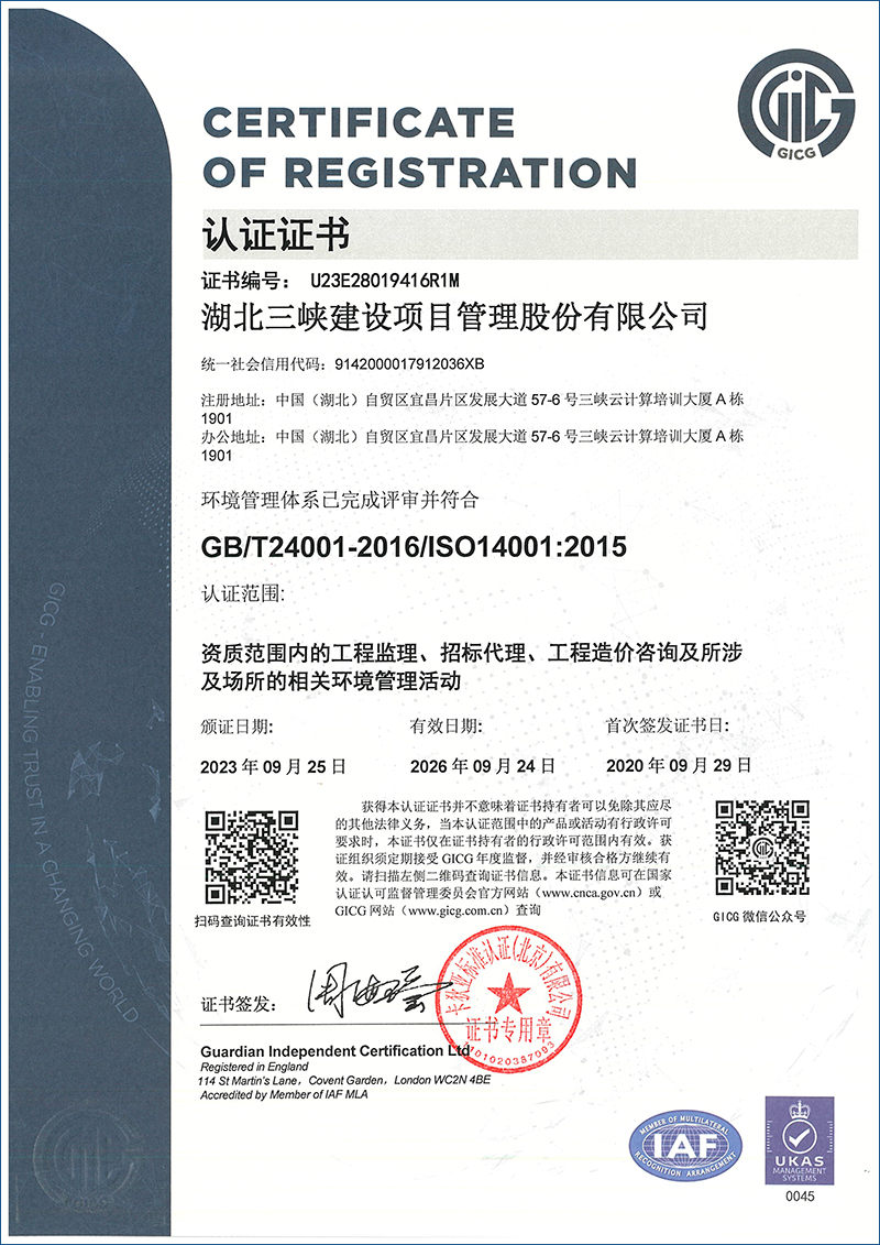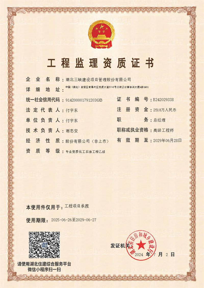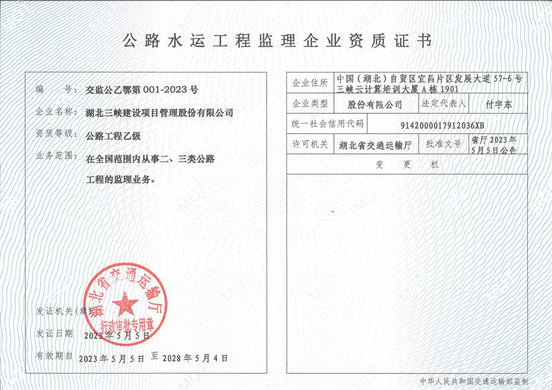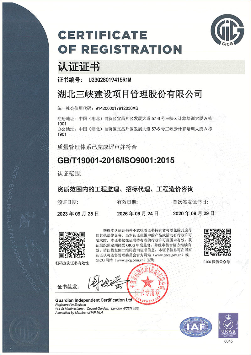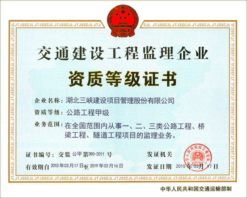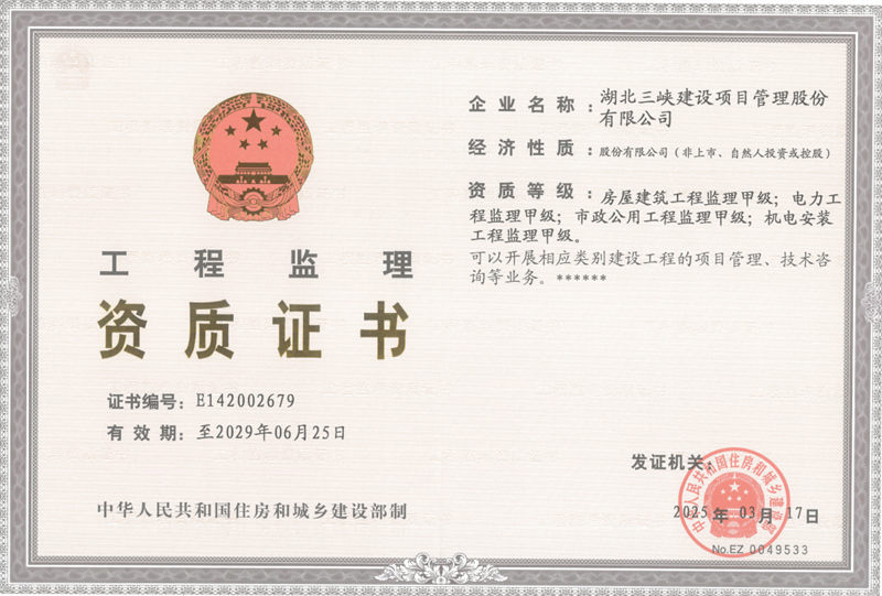 湖北三峽建設(shè)項目管理股份有限公司立足湖北宜昌,業(yè)務(wù)范圍遍及新疆、云南、福建、廣東、安徽等省市,為投資人提供了誠信、科學(xué)、規(guī)范的項目管理咨詢服務(wù)。公司注重以人為本,匯聚了專業(yè)、敬業(yè)、廉潔的人才隊伍,擁有全國注冊監(jiān)理工程師、一級造價師、一級建造師、咨詢工程師(投資)等注冊執(zhí)業(yè)人員120余人(其中高級工程師30余人);公司致力以標(biāo)準(zhǔn)為基,形成了履責(zé)行為規(guī)范和風(fēng)險管理機(jī)制,質(zhì)量管理、環(huán)境管理、職業(yè)健康安全管理獲ISO9001、ISO14001、 ISO 45001管理體系認(rèn)證,公司研發(fā)的信息管理系統(tǒng)獲國家版權(quán)局計算機(jī)軟件著作權(quán)證;公司追求以價值為魂,鑄就了全過程控制、全要素服務(wù)的工作作風(fēng),所承擔(dān)的項目獲國家級建設(shè)工程質(zhì)量安全獎9項、省級建設(shè)工程質(zhì)量安全獎300余項,市級建設(shè)工程質(zhì)量安全獎500余項,合同履約率100%。